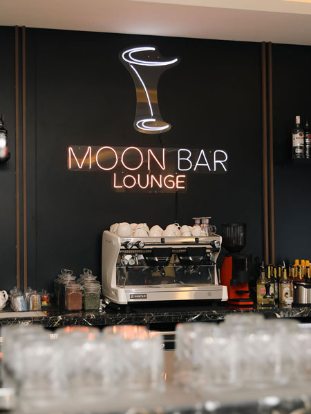 Moon Bar Lounge offers a breathtaking view of the moon from the terrace during the evenings. It’s the ideal spot to enjoy signature cocktails, exceptional coffee, and unwind in a cozy, welcoming atmosphere.